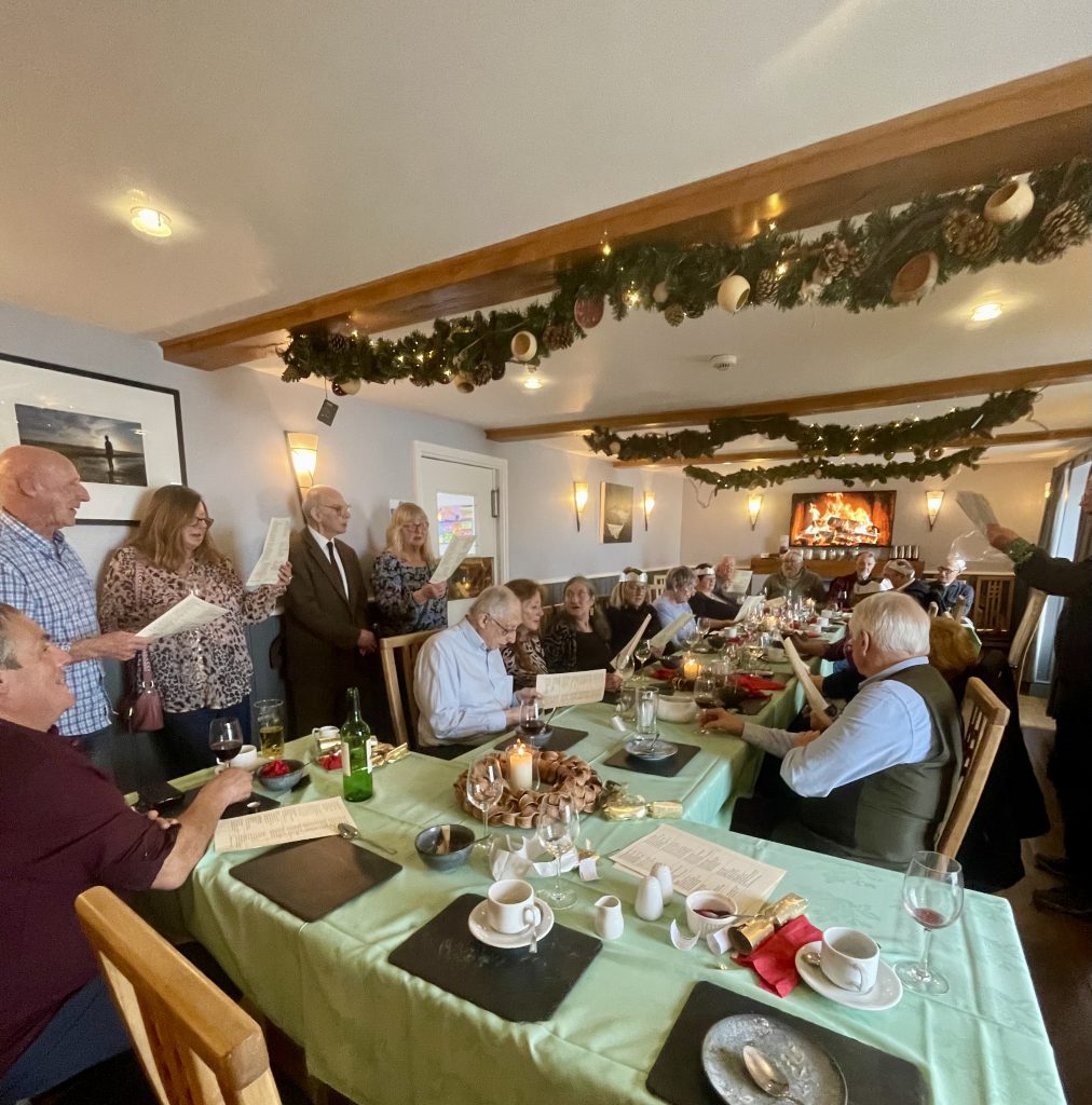 Johnathan Rees was stirring as ever on the fiddle, and there was some lovely singing with some surprising voices (in a good way!). Chairman of the Welfare Committee Adrian Brice made a short speech thanking villagers for their support and Committee members for their hard work. Appreciation was also given to Mike Rutherford and the staff for another fantastic meal. Thanks to everyone who gave a donation towards the cost of the meal, it’s much appreciated to allow us to continue our work.